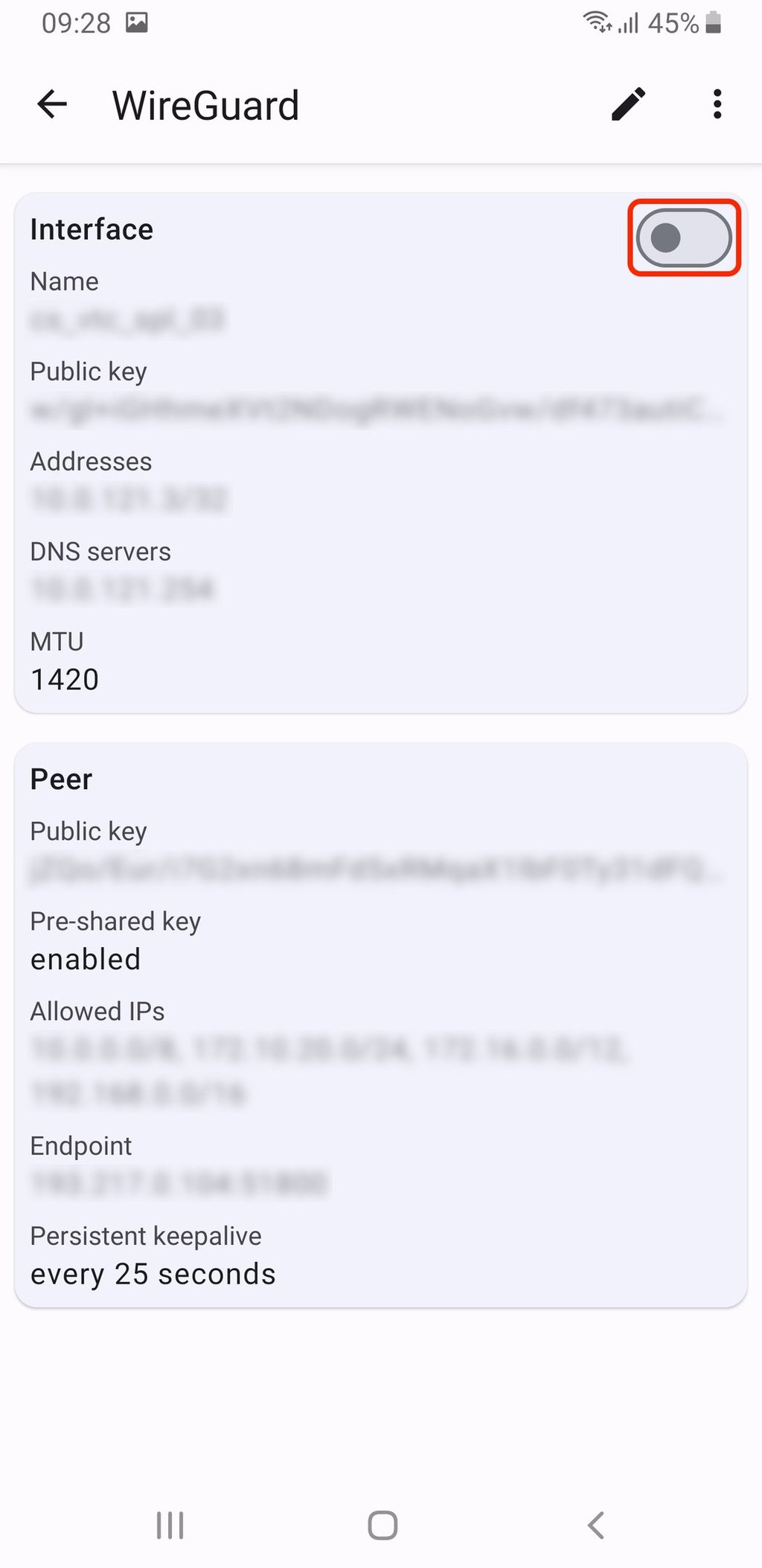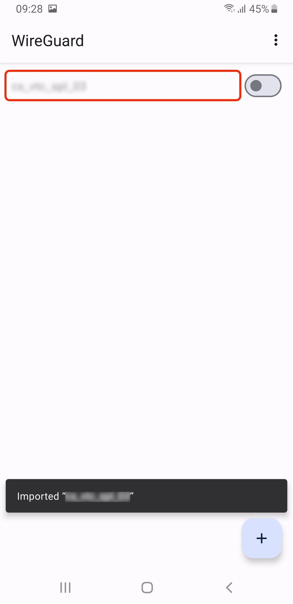 8. Sveikiname! WireGuard konfigūracija ant jūsų mobiliojo įrenginio baigta.