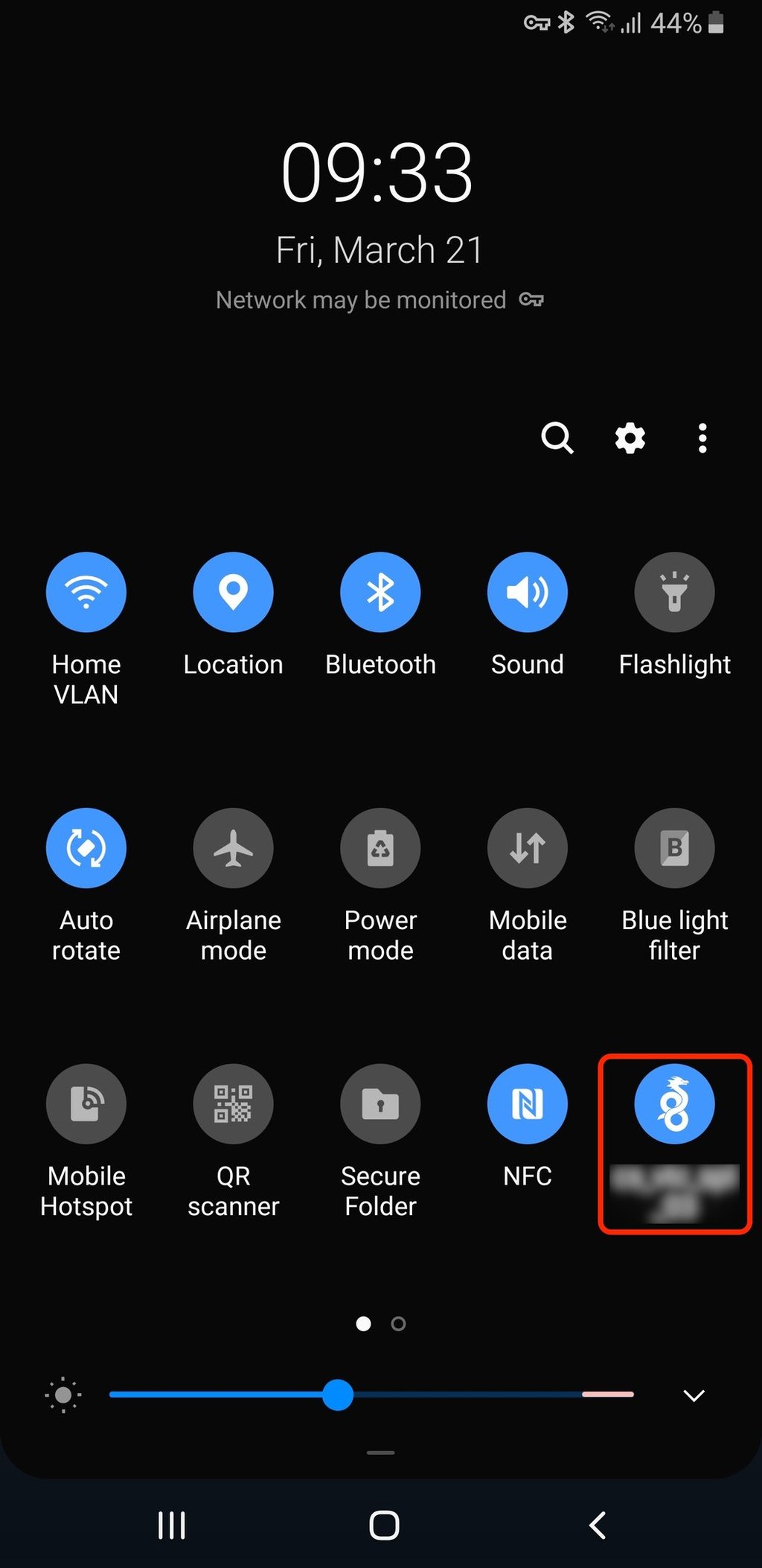 • Taip pat aktyvuoti WireGuard VPN tunelį galite per greitos prieigos meniu (braukite žemyn nuo ekrano viršaus);